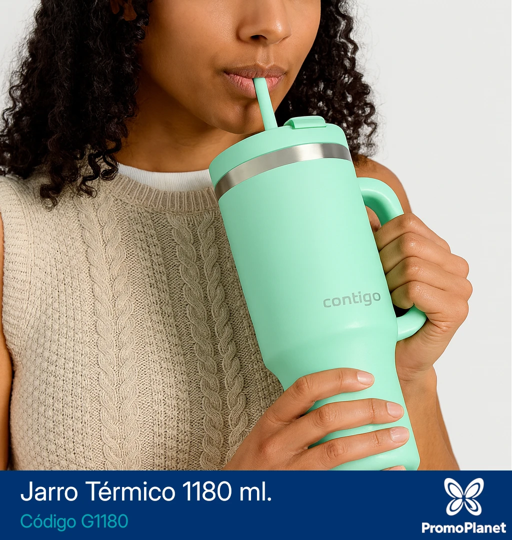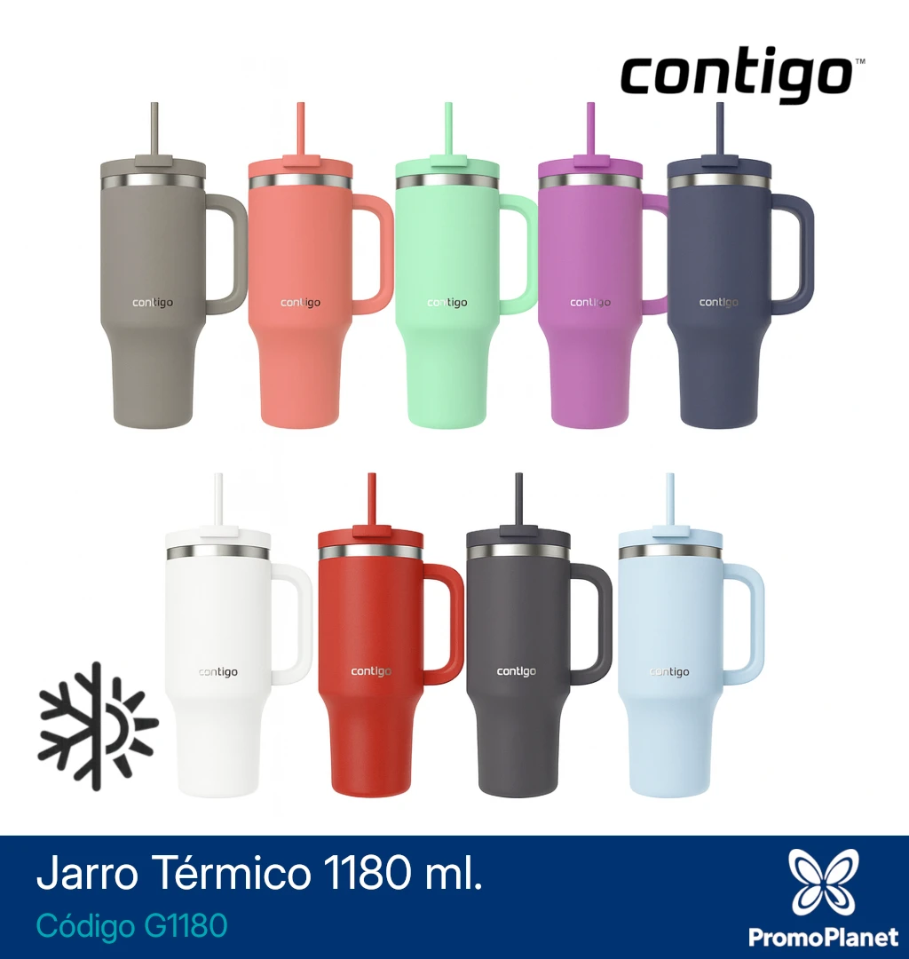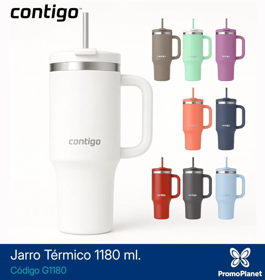 El jarro térmico G1180 de la marca Contigo está fabricado en acero inoxidable con aislamiento al vacío.