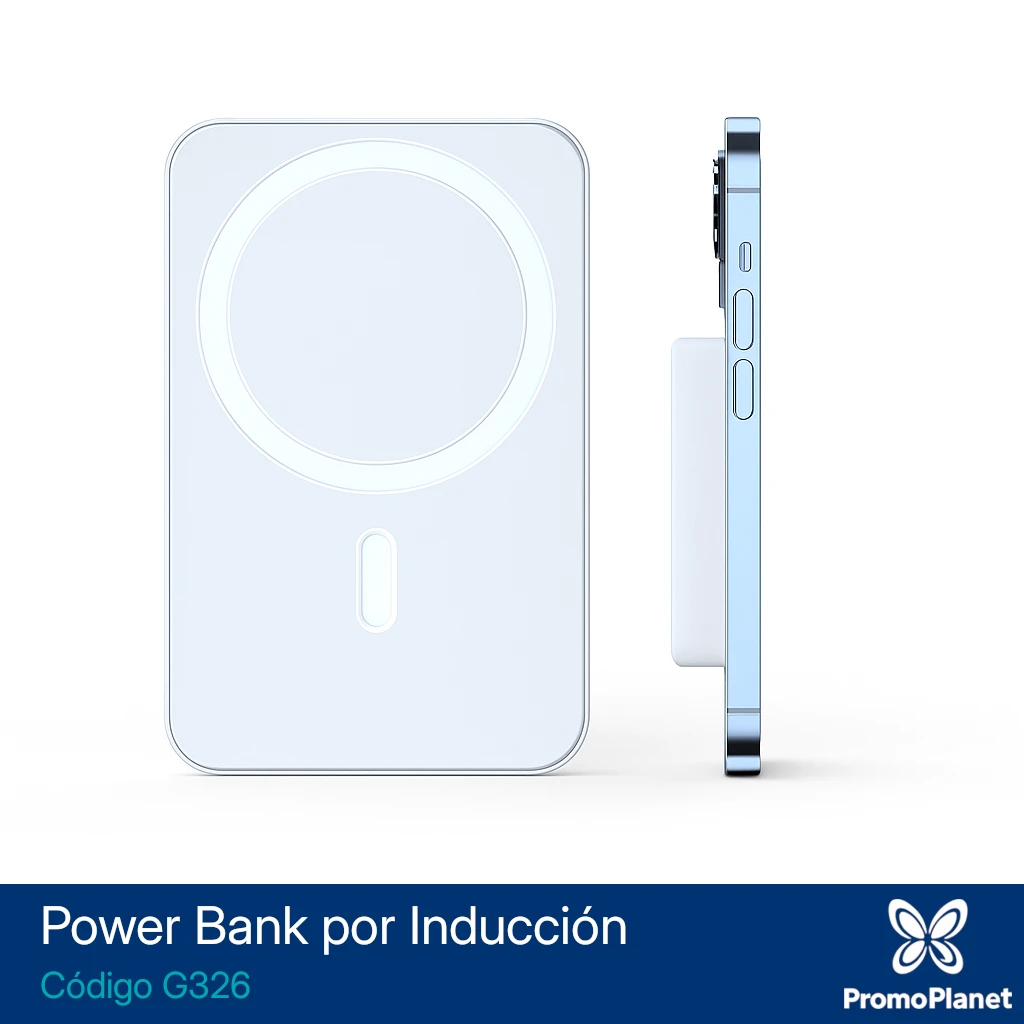 El power bank G326 es un cargador inalámbrico MagSafe de 15W con capacidad de 5000 mAh, ideal para una carga rápida y práctica.