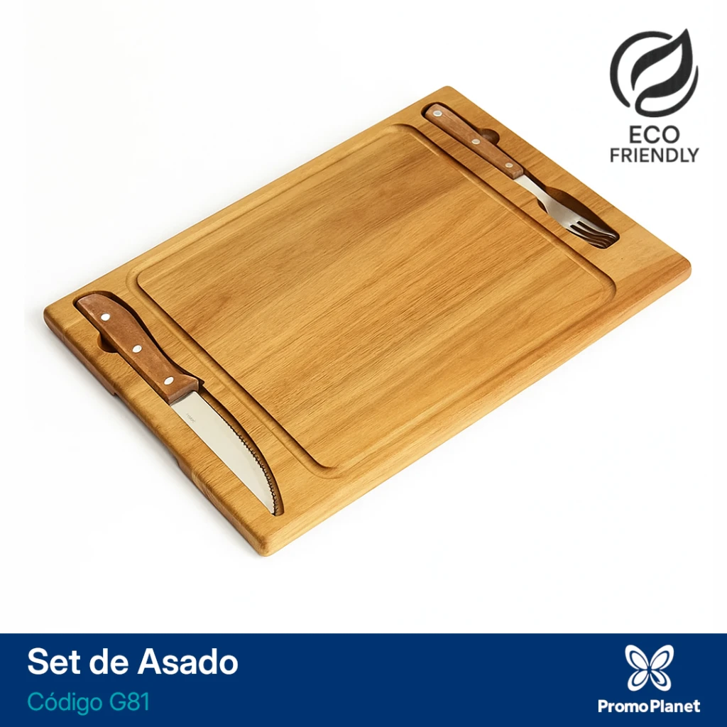 El set de asado G81 está elaborado en madera de acacia y acero inoxidable 420, materiales duraderos y de excelente terminación.